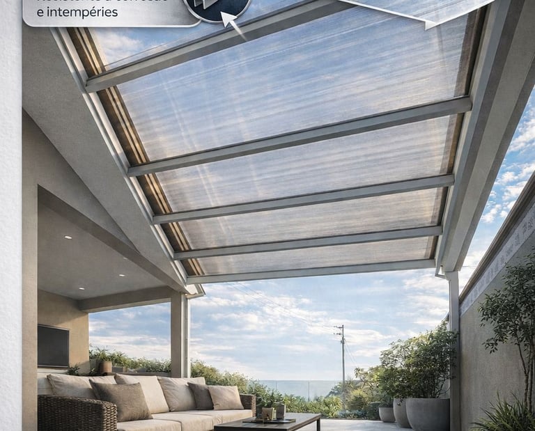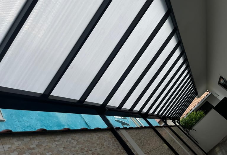 Montamos coberturas de policarbonato resistentes para sua casa ou comércio.