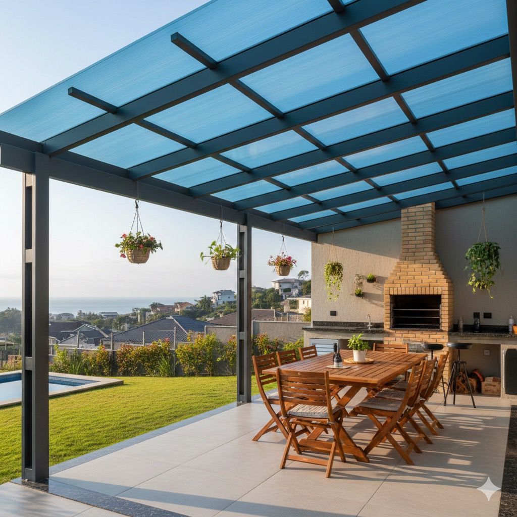 Transformamos áreas externas em espaços de convivência para o ano todo. Nossas coberturas residenciais unem design moderno e proteção contra o clima, permitindo que você aproveite sua varanda, churrasqueira ou piscina com total conforto, sem abrir mão da iluminação natural.